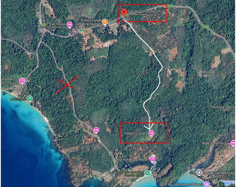 EASY: There is only one main road on Koh Kood Island and Ferry-taxi will drive all of it, and 100% will drive past your desired location all you need is to jump off at your main road location.