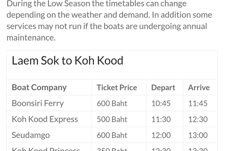 Koh Kood Ferry Timetables and Ticket Prices 2024-25