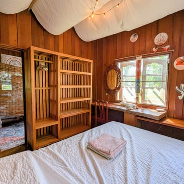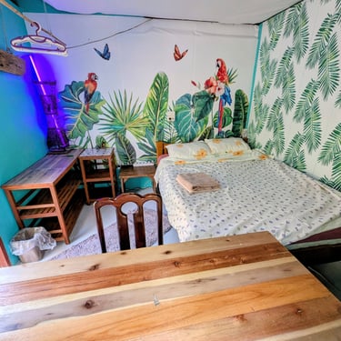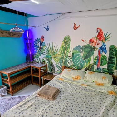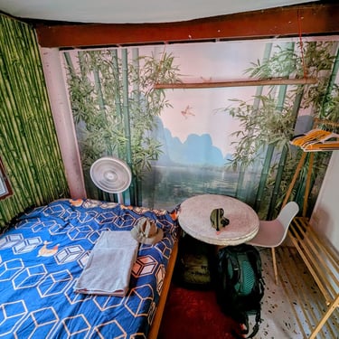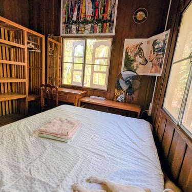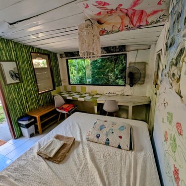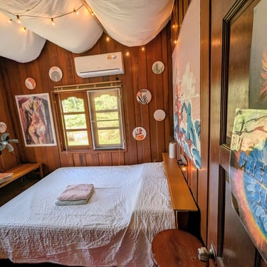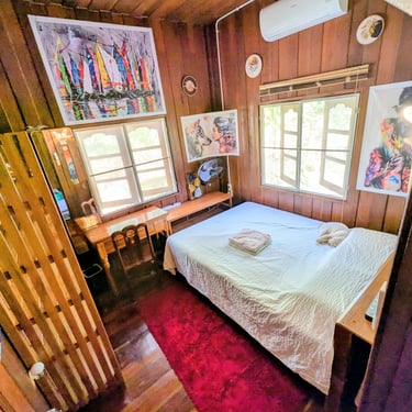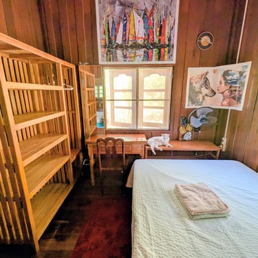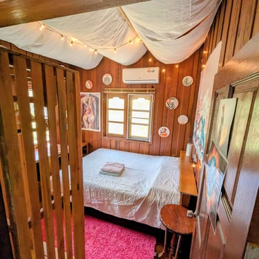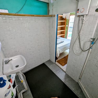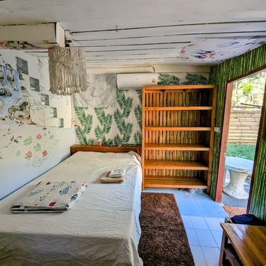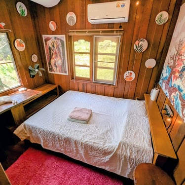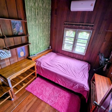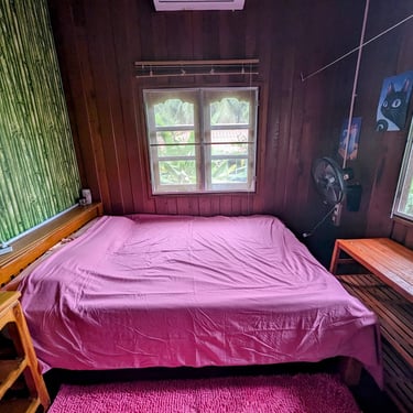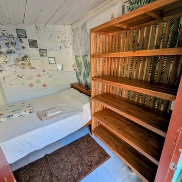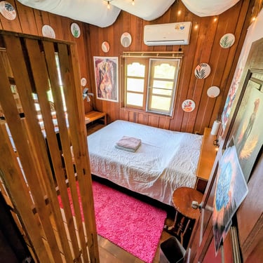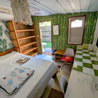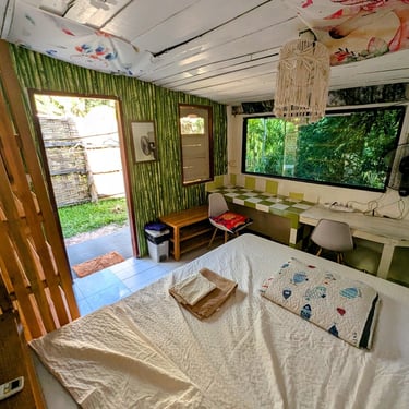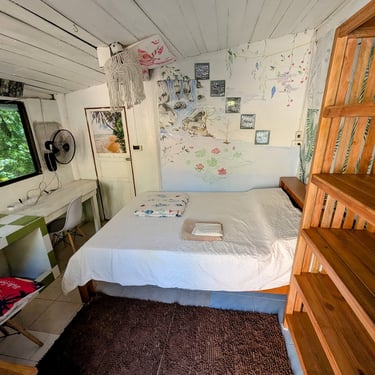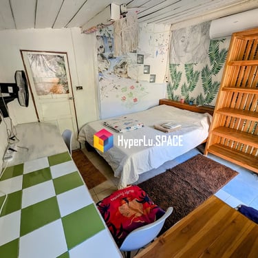 GROUND FLOOR. The only room with a Private entrance, Private bathroom and private small garden space. Best suited for ambiverts who want to be part of the group, but crave to have their own hideout. Room is well furnished with a top-tier mattress & great memory-foam pillows, A/C, hot shower and a fan. *Have personal space + all the house privileges.