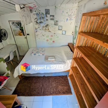 TOP FLOOR. Sunny side, bright and colourful all day, well-furnished. Also comes with A/C, Fan, Comfortable computer table, top-tier mattress & great memory-foam pillows. Room has a private 3x2m outside the room open-space. Top floor privilege: comfy balcony shared by top floor occupants explicitly.